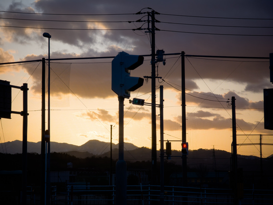 夕焼けネットと赤信号
