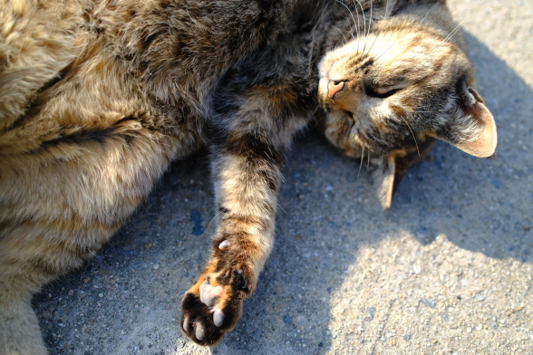 男木島、暑いのでにゃんこも見かけないなと思ったら風が通る高台の日陰に居ました。涼しいところをちゃんと知っていますね