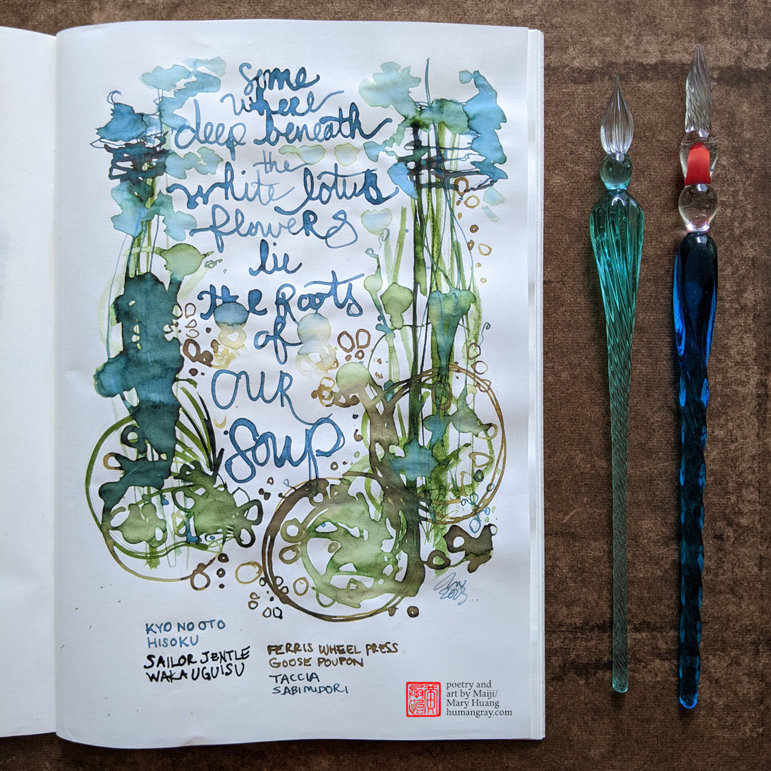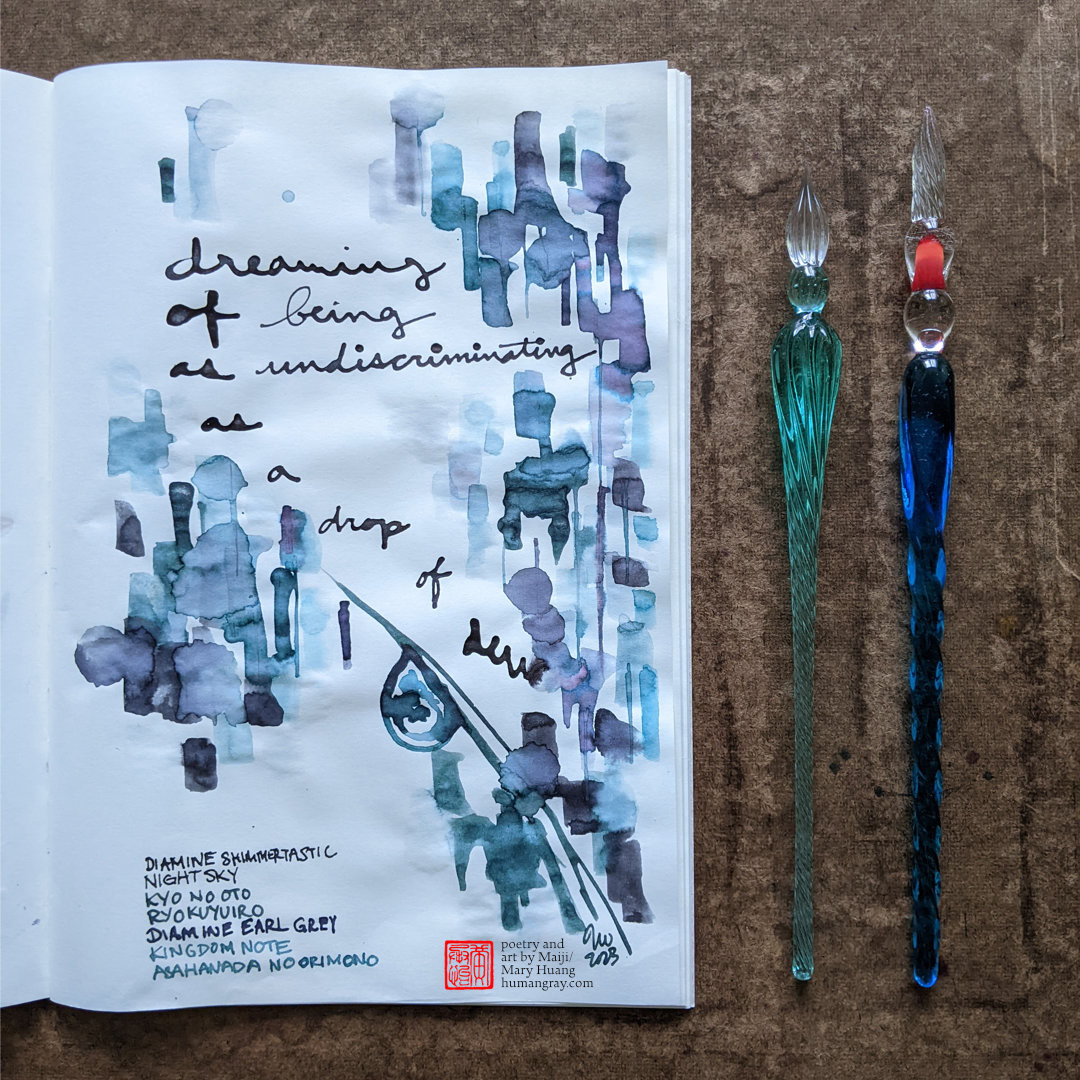 #haiku #ink #FountainPenInk #poetry #MastoArt #CreativeToots #dew #Buddhism