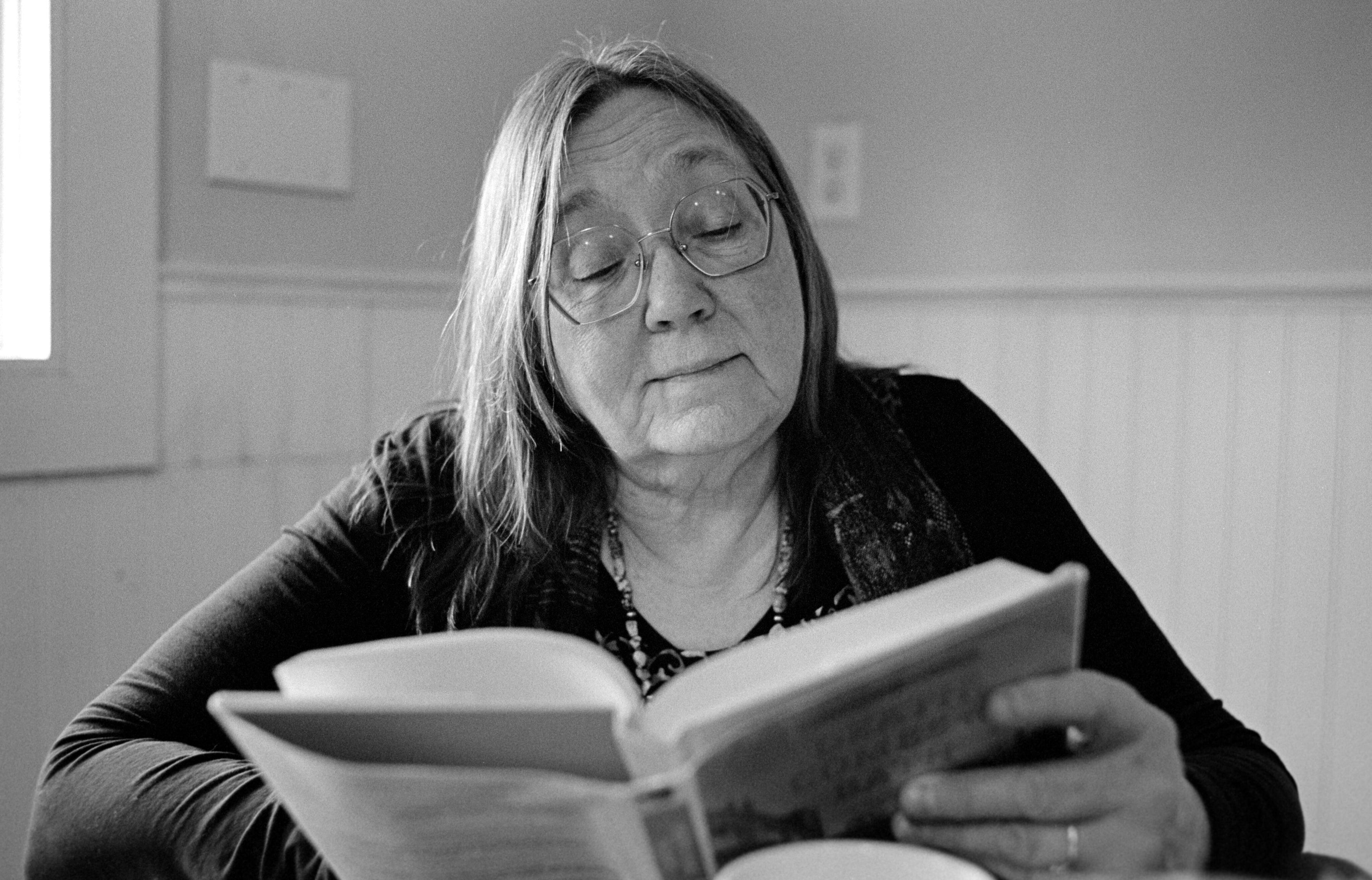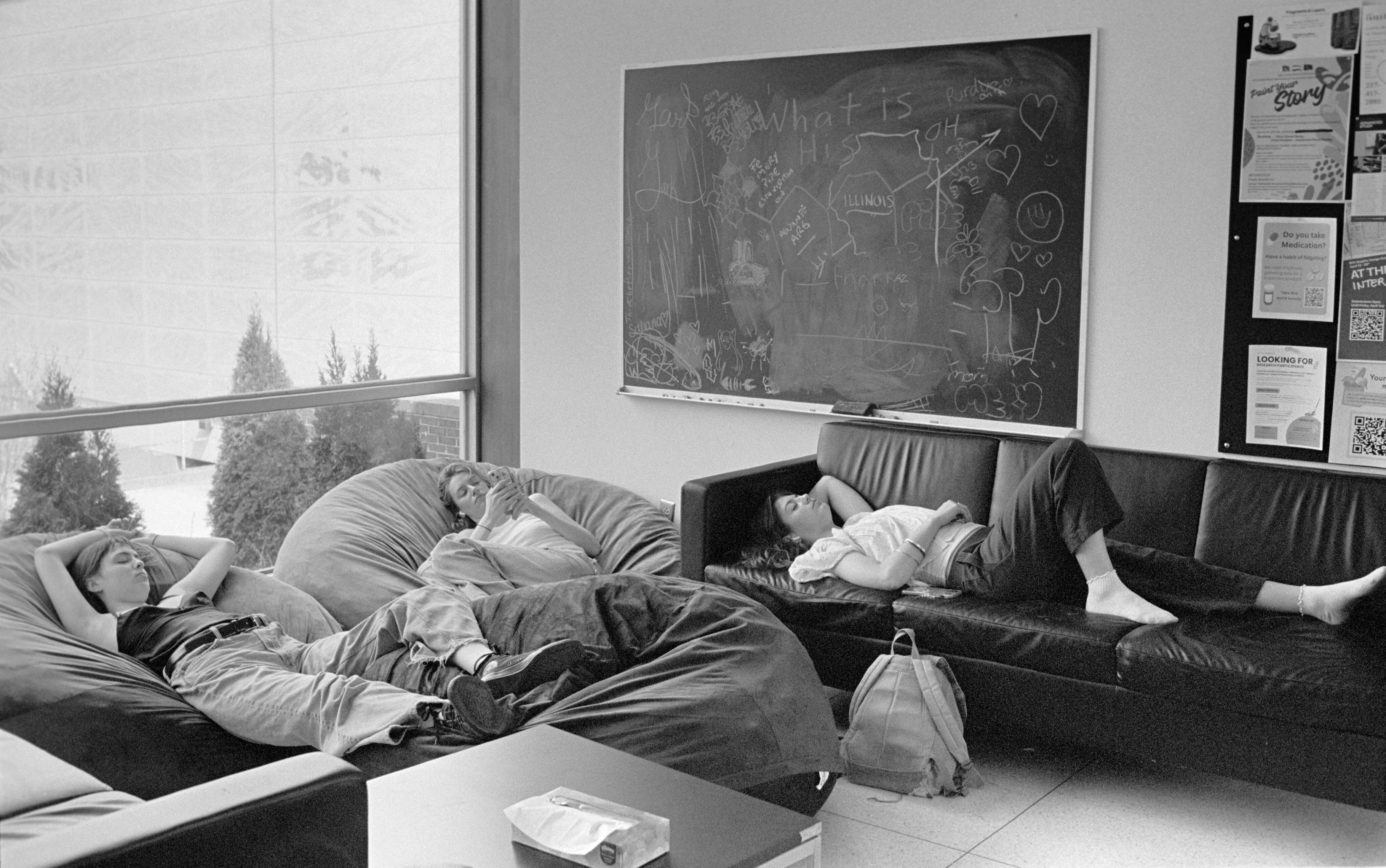 One: Three U of I students in a study room attached to the museum.