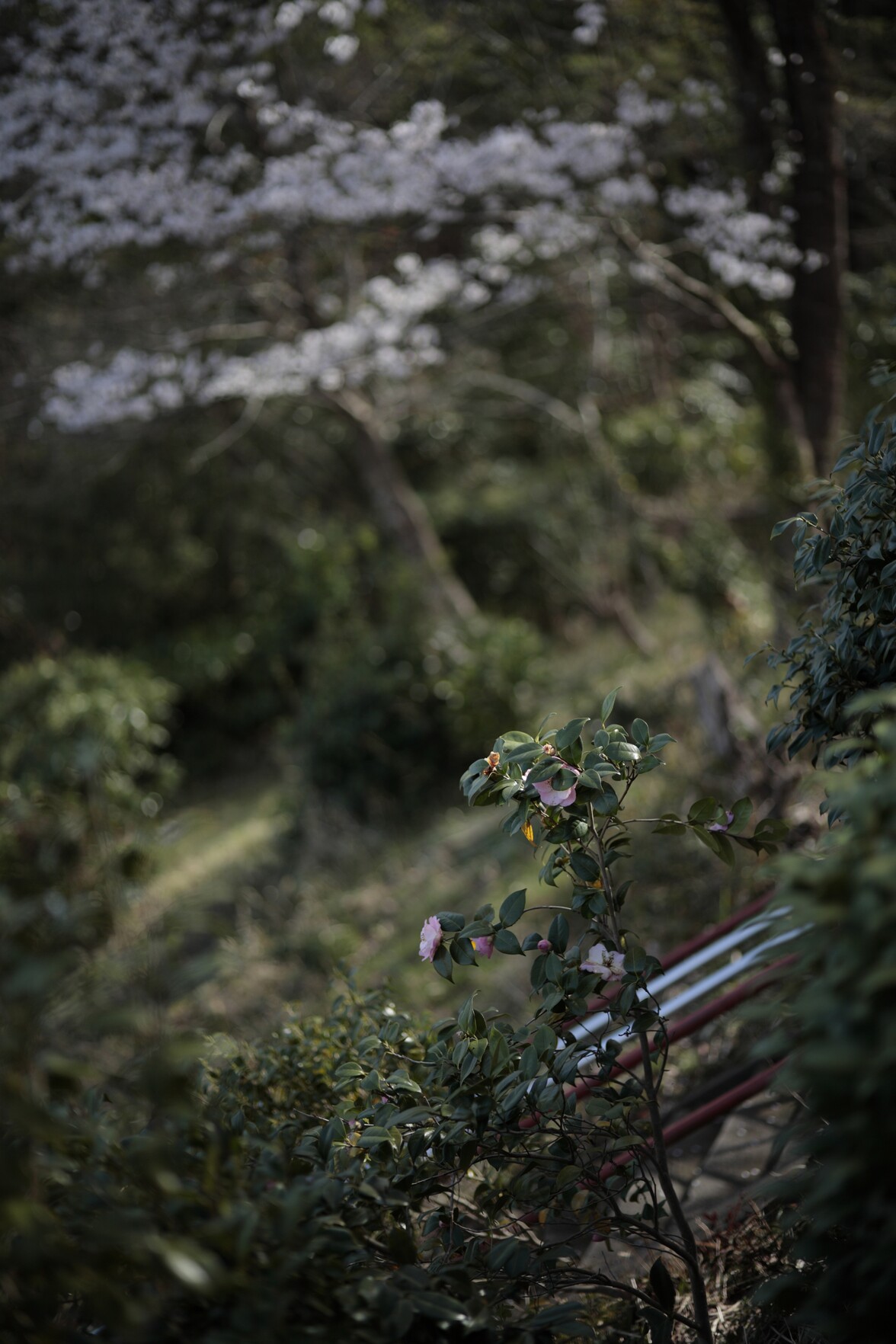 サクラは期待してなかったんだけど、見頃を迎えつつある八重桜がほどよく賑やかで、散り始めた品種も少ない中、侘び寂びのある意外と悪くない感じだった。