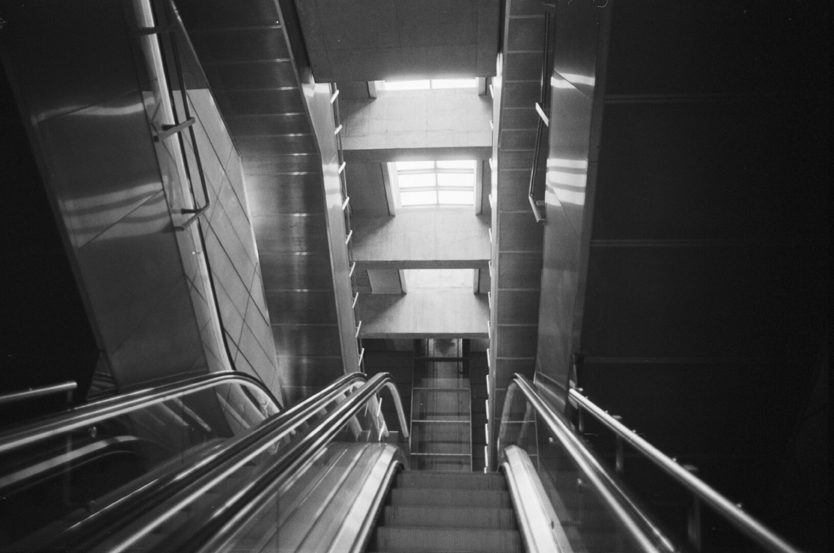 This monochrome image captures the efficiency and structure of Hong Kong's subway system. The clean lines and orderly arrangement reflect the city's commitment to effective urban transport, creating a sense of calm amidst the daily bustle