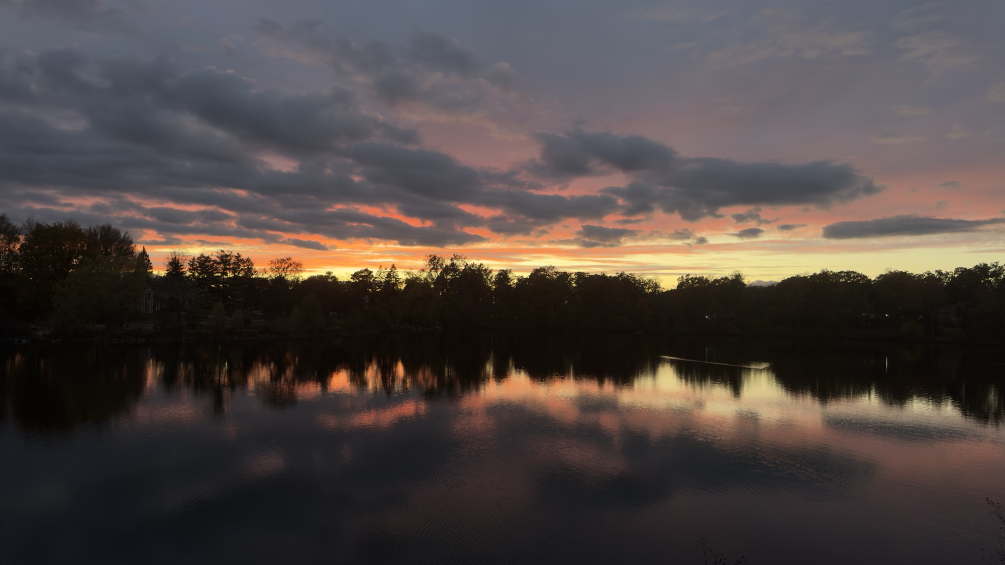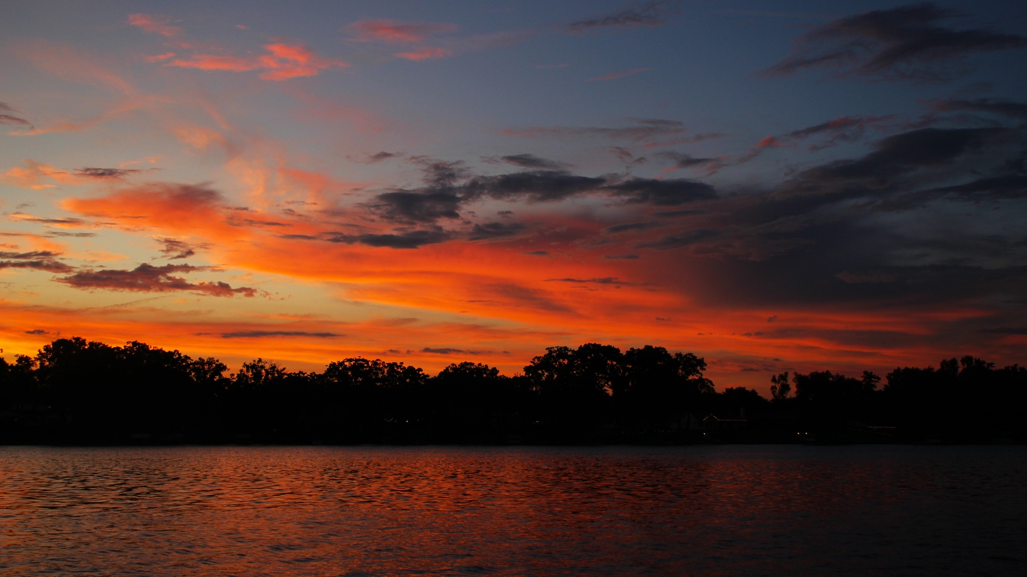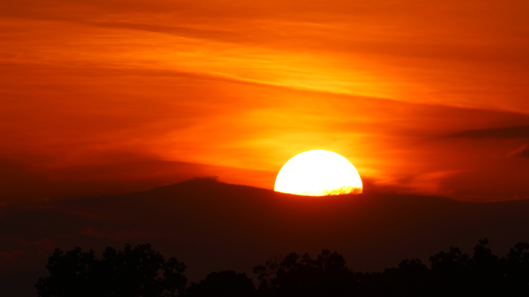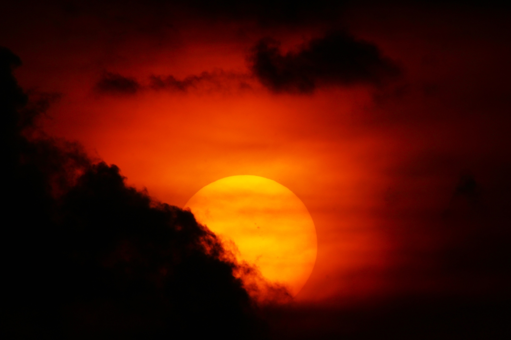 Hide-and-seek sunset. The ash in the high atmosphere is still knocking down a lot of the color across the sky, but it brought some extra color and depth to the sun itself. June 16, 2025. Wolverine Lake, Michigan. #sunset #sun #photography #summer #michigan #cloud #clouds #wildfire #wildfires #art